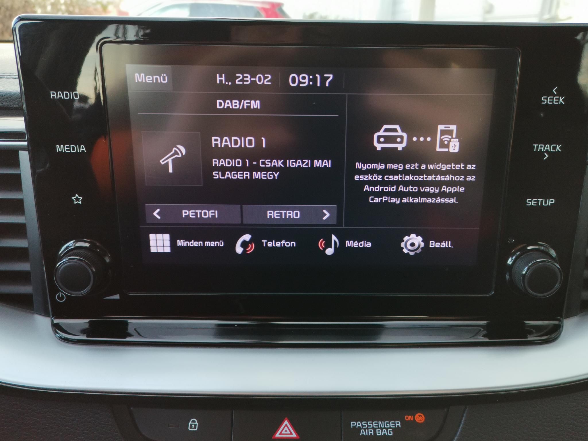 KIA márkakereskedéstől. Az autót 2023.01.19-en helyezték forgalomba új autóként Magyarországon és az előírt karbantartásokat KIA márkaszervizben végezték el. Gyári garancia 2030 januárjáig (150.000 km-s korlátozással) érvényes. Alvázszám: U5YH5815APL146213 6 hangszóró, ABS (blokkolásgátló), állítható kormány, Android Auto, Apple CarPlay, ASR (kipörgésgátló), automata fényszórókapcsolás, automatikusan sötétedő belső tükör, bluetooth-os kihangosító, bőrkormány, centrálzár, digitális kétzónás klíma, EBD/EBV (elektronikus fékerő-elosztó), elektromos ablak elöl, elektromos ablak hátul, elektromos tükör, elektromosan behajtható külső tükrök, érintőkijelző, esőszenzor, ESP (menetstabilizátor), fáradtságérzékelő, fedélzeti komputer, fékasszisztens, függönylégzsák, fűthető első ülés, fűthető kormány, fűthető tükör, guminyomás-ellenőrző rendszer, hangvezérlés, hátsó fejtámlák, indításgátló (immobiliser), ISOFIX rendszer, kikapcsolható légzsák, kormányról vezérelhető hifi, ködlámpa, könnyűfém felni, középső kartámasz, LED fényszóró, manuális (6 fokozatú) sebességváltó, menetfény, multifunkcionális kijelző, multifunkciós kormánykerék, oldallégzsák, radaros fékasszisztens, rádió, sávtartó rendszer, sávváltó asszisztens, start-stop/motormegállító rendszer, szervokormány, színezett üveg, tábla-felismerő funkció, tempomat, tolatókamera, tolatóradar, USB csatlakozó, utasoldali légzsák, ülésmagasság állítás, vezetőoldali légzsák, visszagurulás-gátló, autóbeszámítás lehetséges, első forgalomba helyezés Magyarországon, első tulajdonostól, garanciális, garantált km futás, keveset futott, nem dohányzó, rendszeresen karbantartott, végig vezetett szervizkönyv, vezetett szervizkönyv, 25%-tól elvihető.