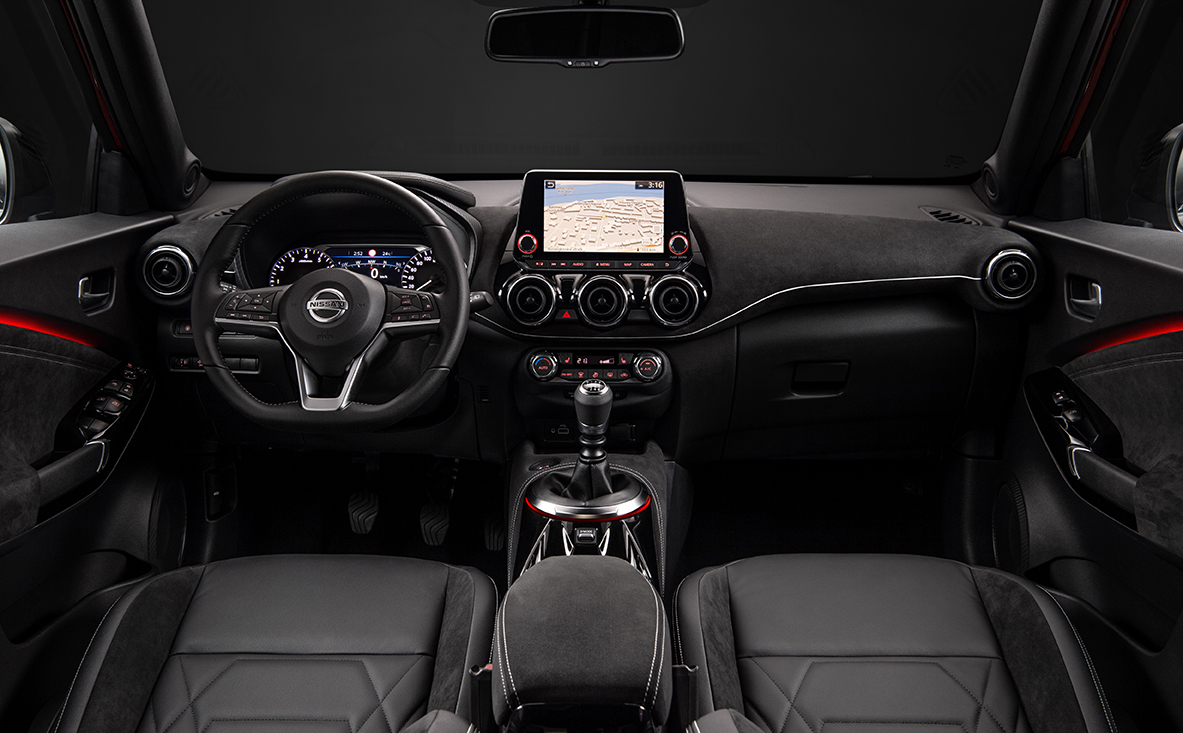 Az új Nissan Juke forradalmian új formatervezése a kiváló összpontosítást segítő, pilótafülkéhez hasonló belső teret teremt. A „sikló szárny” formatervezésnek és a lebegő műszerfalnak is köszönhetően az új Nissan Juke az izgalmas teljesítmény középpontjába helyezi Önt. A fejlett technológia vezérlője ösztönösen kezelhető módon, az Ön keze ügyében helyezkedik el. Vezetés közben 360 fokos zenei élményben lehet része a fejtámlába épített hangszóróknak köszönhetően. A sportülések pedig körülölelik és helyén tartják az vezetőt és utasát. Emellett a beltér tágas, levegős és biztonságos kilátást biztosít.