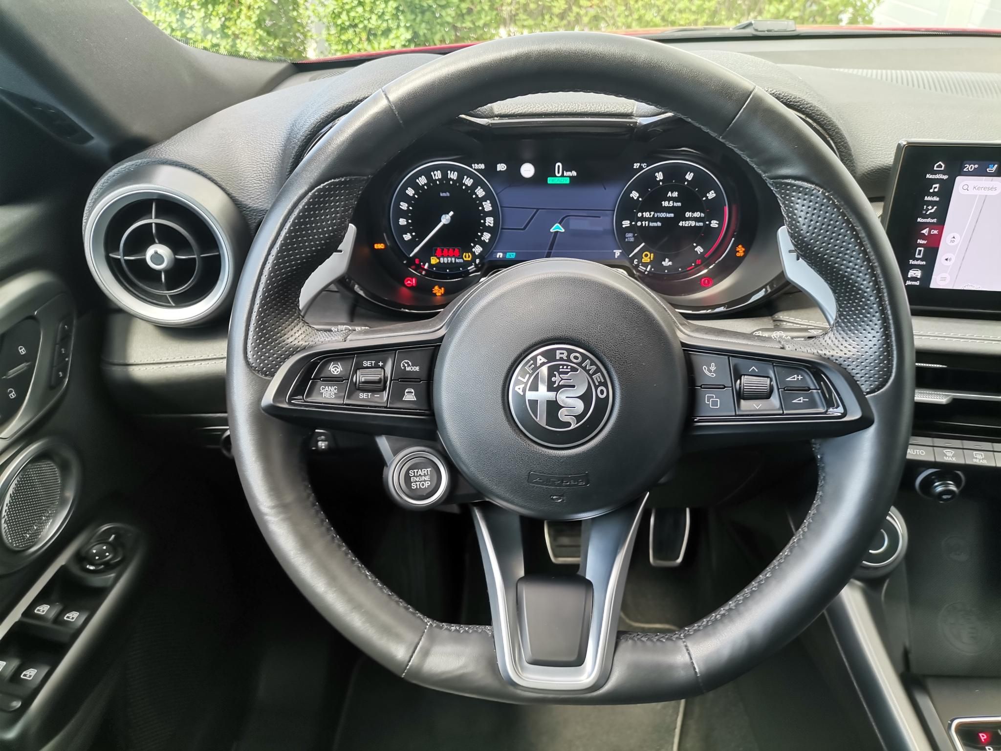 Az autót 2023.03.03-án helyezték forgalomba új autóként Magyarországon és az előírt karbantartásait is Alfa Romeo márkaszervizben végezték el. A gyári garancia 2028 márciusáig érvényes. A felsoroltakon kívül a felszereltség része még: gyalogosfelismerő rendszer, GPS alapú táblafelismerő, Harman Kardon prémium hangrendszer, sötétített hatós ablakok, 10,25 colos teljesen digitális műszerfal, gyári aluminimum küszöbbetétek és gyári szőnyegkészlet. A hirdetett árban a gyári 20 colos alufelnikre szerelt nyári gumik mellé járnak az autóhoz a szintén alufelnikre szerelt téli gumik is. Alvázszám: ZARNASSA0N3011760 6 hangszóró, ABS (blokkolásgátló), állítható combtámasz, állítható kormány, Android Auto, Apple CarPlay, ARD (automatikus távolságtartó), ASR (kipörgésgátló), automata (7 fokozatú) sebességváltó, automata fényszórókapcsolás, automata távfény, automatikus segélyhívó, automatikusan sötétedő belső tükör, bluetooth-os kihangosító, bőr belső, bőrkormány, centrálzár, deréktámasz, digitális kétzónás klíma, digitális műszeregység, EBD/EBV (elektronikus fékerő-elosztó), elektromos ablak elöl, elektromos ablak hátul, elektromos csomagtérajtó-mozgatás, elektromos tükör, elektromos ülésállítás utasoldal, elektromos ülésállítás vezetőoldal, elektromosan behajtható külső tükrök, elektronikus rögzítőfék, első-hátsó parkolóradar, érintőkijelző, esőszenzor, ESP (menetstabilizátor), fáradtságérzékelő, fedélzeti komputer, fékasszisztens, függönylégzsák, fűthető tükör, GPS (navigáció), guminyomás-ellenőrző rendszer, hangvezérlés, hátsó fejtámlák, indításgátló (immobiliser), ISOFIX rendszer, kikapcsolható légzsák, kormányról vezérelhető hifi, kormányváltó, ködlámpa, könnyűfém felni, középső kartámasz, kulcsnélküli indítás, kulcsnélküli nyitórendszer, LED mátrix fényszóró, memóriás vezetőülés, menetfény, multifunkcionális kijelző, multifunkciós kormánykerék, oldallégzsák, radaros fékasszisztens, rádió, sávtartó rendszer, sávváltó asszisztens, sportfutómű, sportülések, start-stop/motormegállító rendszer, szervokormány, színezett üveg, tábla-felismerő funkció, távolsági fényszóró asszisztens, távolságtartó tempomat, tempomat, tolatókamera, tolatóradar, USB csatlakozó, utasoldali légzsák, üléshűtés/szellőztetés, ülésmagasság állítás, ütközés veszélyre felkészítő rendszer, vészfék asszisztens, vezeték nélküli telefontöltés, vezetőoldali légzsák, visszagurulás-gátló, autóbeszámítás lehetséges, azonnal elvihető, első forgalomba helyezés Magyarországon, első tulajdonostól, frissen szervizelt, garanciális, garantált km futás, garázsban tartott, hölgy tulajdonostól, keveset futott, nem dohányzó, rendszeresen karbantartott, végig vezetett szervizkönyv, vezetett szervizkönyv, 30%-tól elvihető.