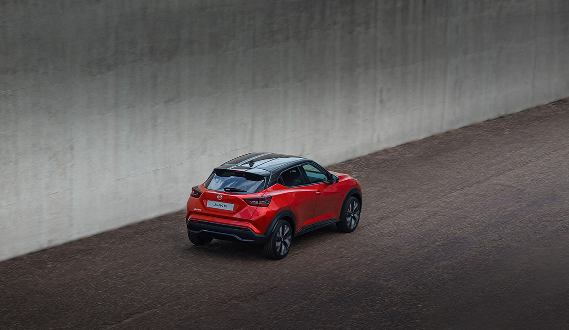 Metszett vonalak, drámai fények, izgalmas formatervezési részletek, 19 colos könnyűfém keréktárcsák és a jellegzetes lebegő tető. Szembetűnő és olyan elegáns aerodinamikát teremt, melynek révén szinte suhan a levegőben az üzemanyag-hatékonyság és a csendes utazás érdekében. Fejezze ki önmagát az új Nissan Juke egyedi stílusával, mely magabiztosan emelkedik ki az utak szürkeségéből.