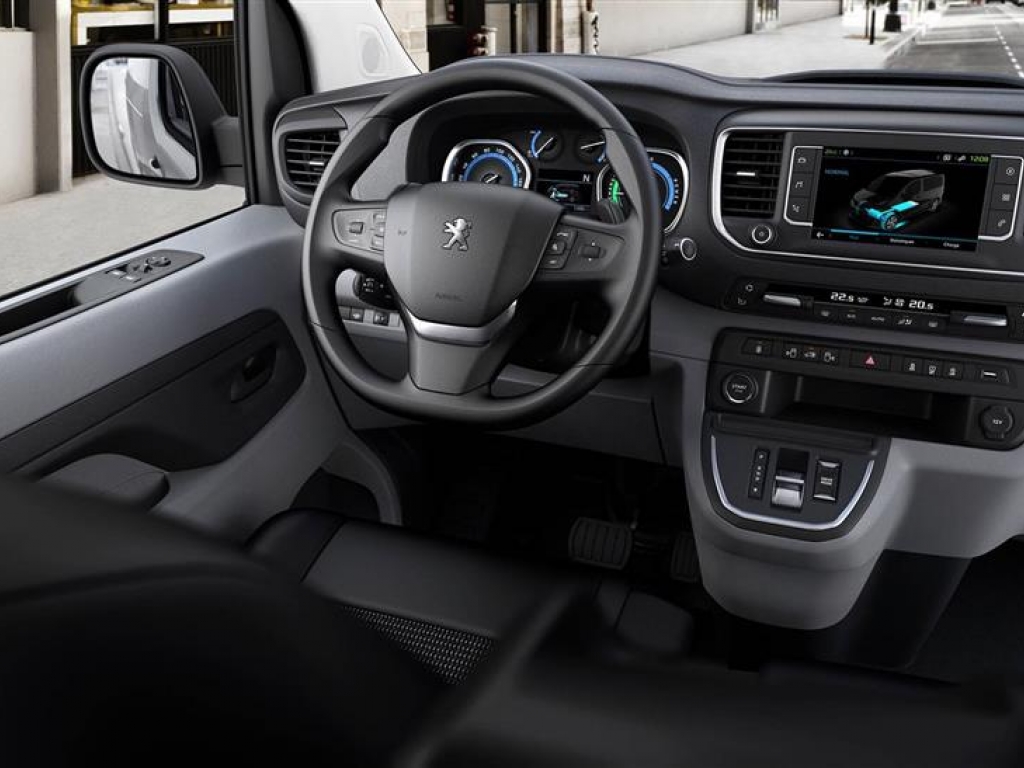 A PEUGEOT e-Expert belső kialakítása nem változott; 6,6 m3 hasznos tér, 1 275 kg terhelhetőség, 1,90 m alatti magasság és nem csökkent a vontatási kapacitása sem.