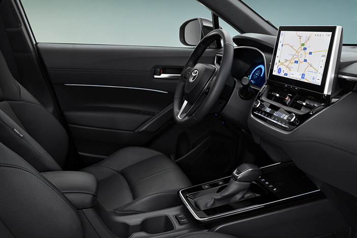 A stílusos fények erős vízszintes hatást teremtenek elöl és hátul egyaránt. A dombornyomott logó a hátsó részen magabiztos és modern megjelenést kölcsönöz az új Corolla Crossnak.